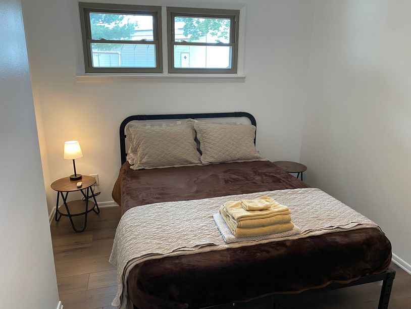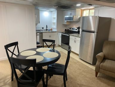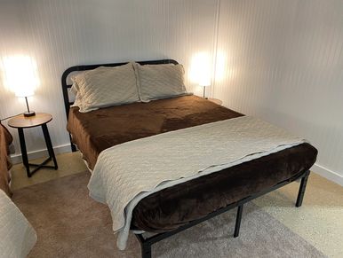 This basement style Studio Apartment offers two Queen Sized Beds, a dining room, full sized kitchen and bathroom. This unit has its own entrance that can be joined or closed off from the main Cottage Living Areas.