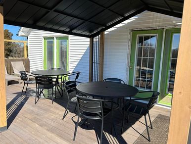 The Farm House is the perfect all inclusive experience. Prepare meals in the spacious updated kitchen and cozy up in a large bed with fresh linens. There is no shortage of space to entertain on the private wooden sun deck with sitting areas, and a hot tub . Amenities include: