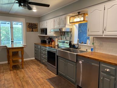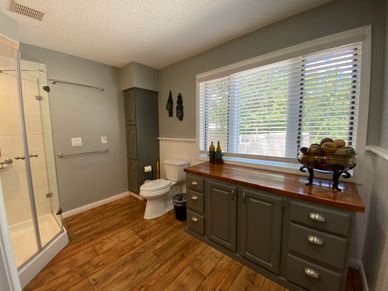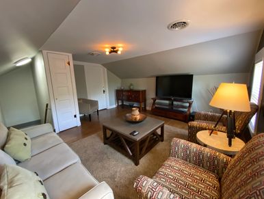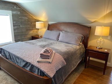 The Lodge has so many amenities to offer. From spacious rooms, large bathrooms, a Gourmet Kitchen, a Hot Tub, and close location to the Pole Barn. We are excited to have you stay with us and experience what SIRentiy Farms has to offer.