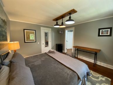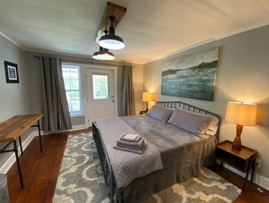 Ever wanted to hop out of bed and straight into a hot tub? You can in room 4! This room has a King sized bed. Enjoy the evenings in the screened in porch with direct access to the lodge hot tub. Store your food and beverages in the mini fridge. Room 4 has direct access to a bathroom that is shared with room 3.