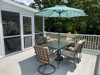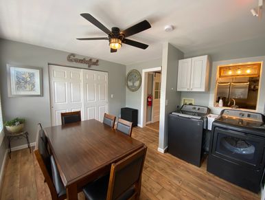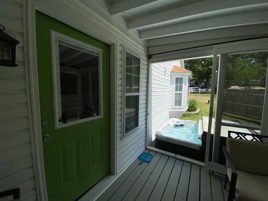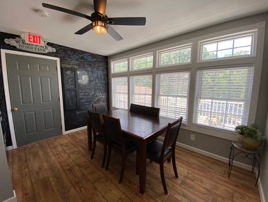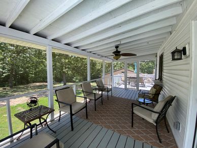 Get away from the summer bugs and relax in our screened in porch. From here, you have access to room 4, the lodge hot tub, and a window to the kitchen. Great for serving drinks from the kitchen.