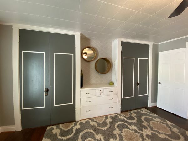 This room is great for guests looking to share a weekend with friends. The large room has a King sized bed and a full sized bed. Close to the communal bathroom. With large build in cabinetry and closets, there is enough space to store all your clothes and accessories. With direct access to the large covered porch, enjoy a teak table with 4 chairs and a porch swing.