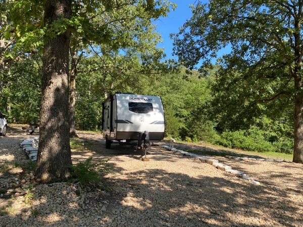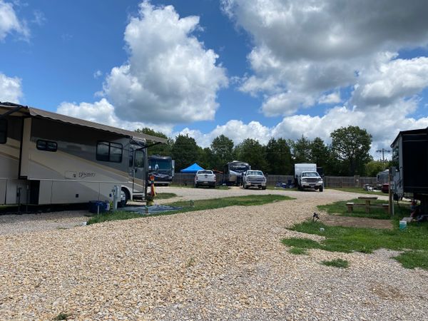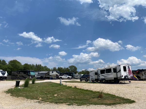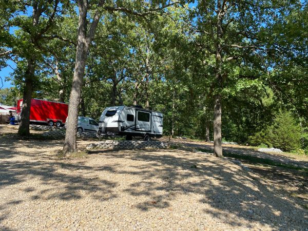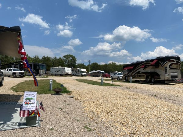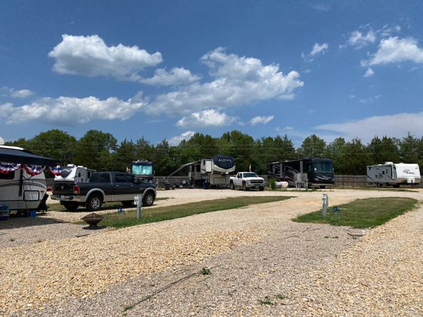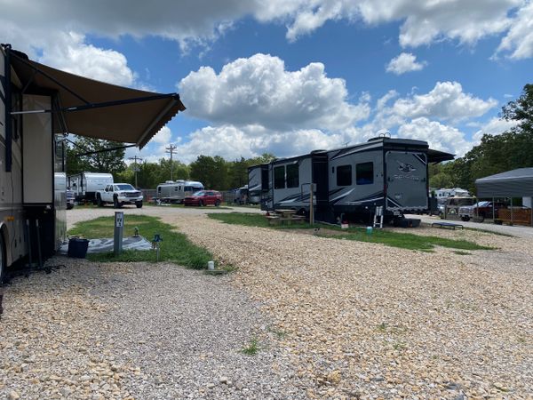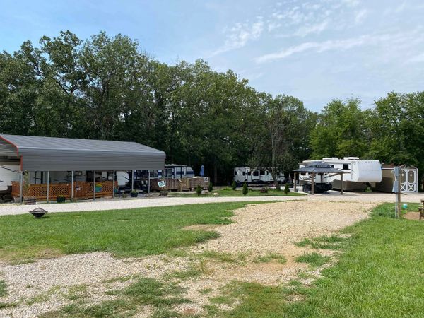 We offer 30 AMP Electric Only sites. We offer 3 pull through sites and 1 back in site near the pools and the Pole Barn. Each site is under a canopy of trees.
